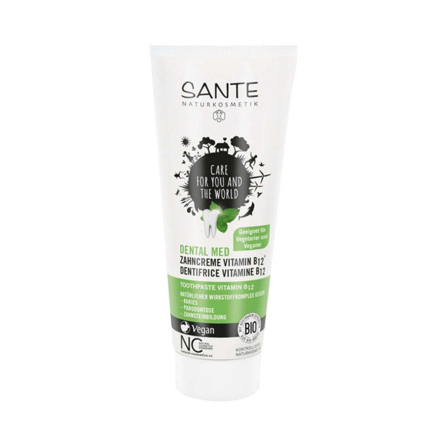 Sante Dental Med Pasta do zębów z witaminą B12 i fluorem 75 ml jest zalecana dla każdego, do codziennej higieny jamy ustnej. Dzięki swoim organicznym składnikom jest bezpieczna dla dzieci i alergików, ekologiczna, ponieważ nie zagraża środowisku.