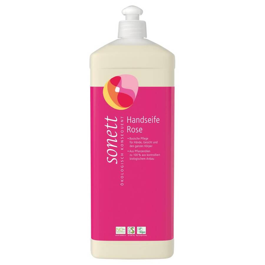 PrzeznaczenieProdukt Sonett Mydło w płynie do rąk róża 1l jest przeznaczony do codziennej higieny rąk. Dzięki delikatnej formule na bazie naturalnych składników, takich jak oliwa z oliwek, olej kokosowy, gliceryna i hydrolat z róży damasceńskiej,, mydło nie tylko skutecznie usuwa brud i bakterie, ale także pielęgnuje skórę, pozostawiając ją miękką i nawilżoną. Jest odpowiednie do wszystkich rodzajów skóry, także tej wrażliwej. Produkt jest przyjazny dla środowiska, biodegradowalny oraz wolny od syntetycznych barwników i konserwantów. Dzięki swojemu pojemnemu opakowaniu 1l, mydło jest wydajne i idealne do użytku domowego oraz w miejscach publicznych, takich jak restauracje, szkoły czy biura.WłaściwościSonett Mydło w płynie do rąk róża 1l to naturalny, organiczny produkt, który doskonale sprawdzi się w codziennej pielęgnacji dłoni ale może służyć także do mycia pozostałych części ciała. Wyprodukowany z dbałością o środowisko, mydło to zawiera składniki pochodzenia roślinnego, które nie tylko oczyszczają skórę, ale także ją pielęgnują.